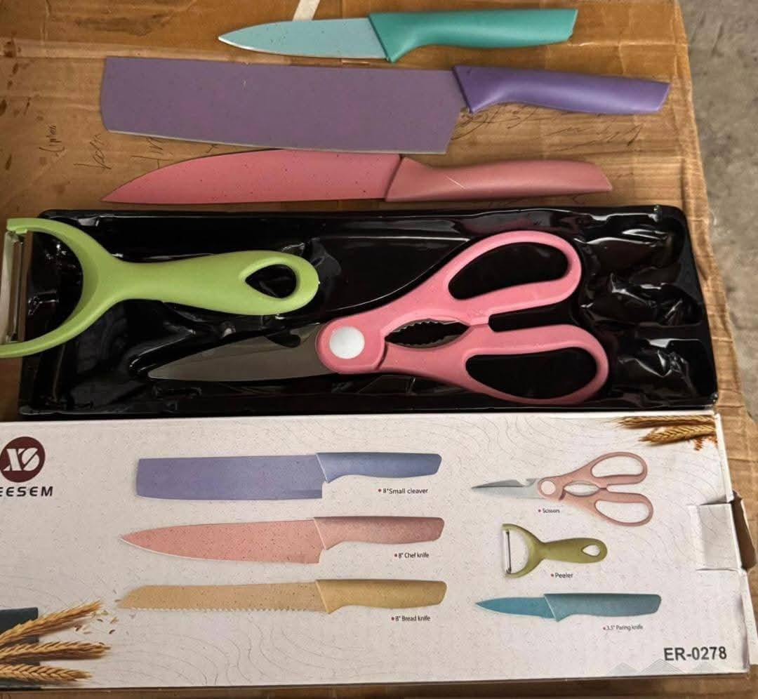 Set pisau serbaguna yang terbuat dari bahan stainless steel non stick coating Cocok untuk di gunakan di rumah tangga ataupun dijadikan hadiah untuk keluarga terdekat atau orang kesayangan anda. 1 set terdiri dari 6 pisau dengan warna kombinasi (tidak bisa pilih 1 warna karena sudah 1 set) dan 1 Serutan.
